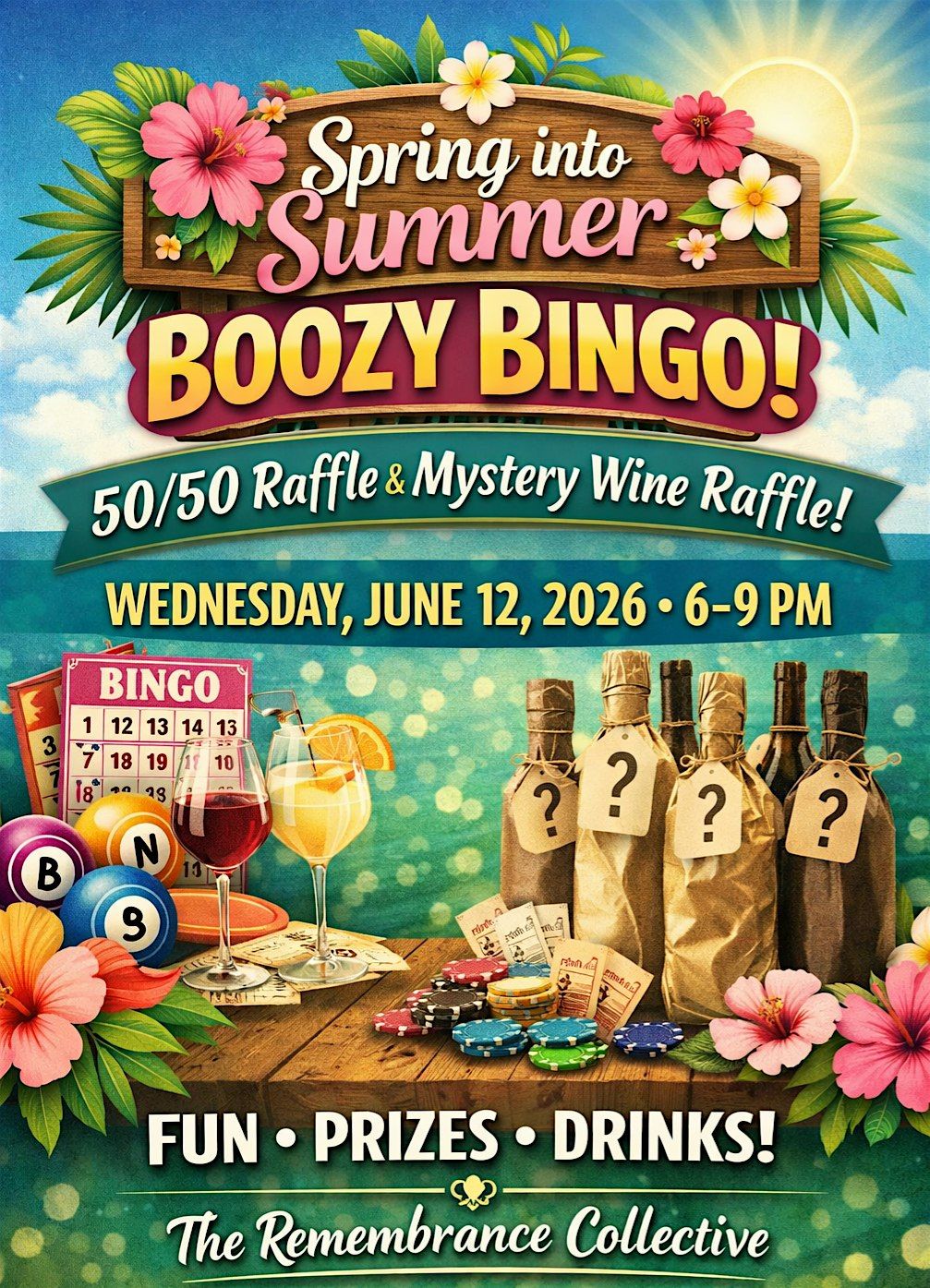 Spring Into Summer Boozy Bingo, Mystery Wine Raffle & 50/50