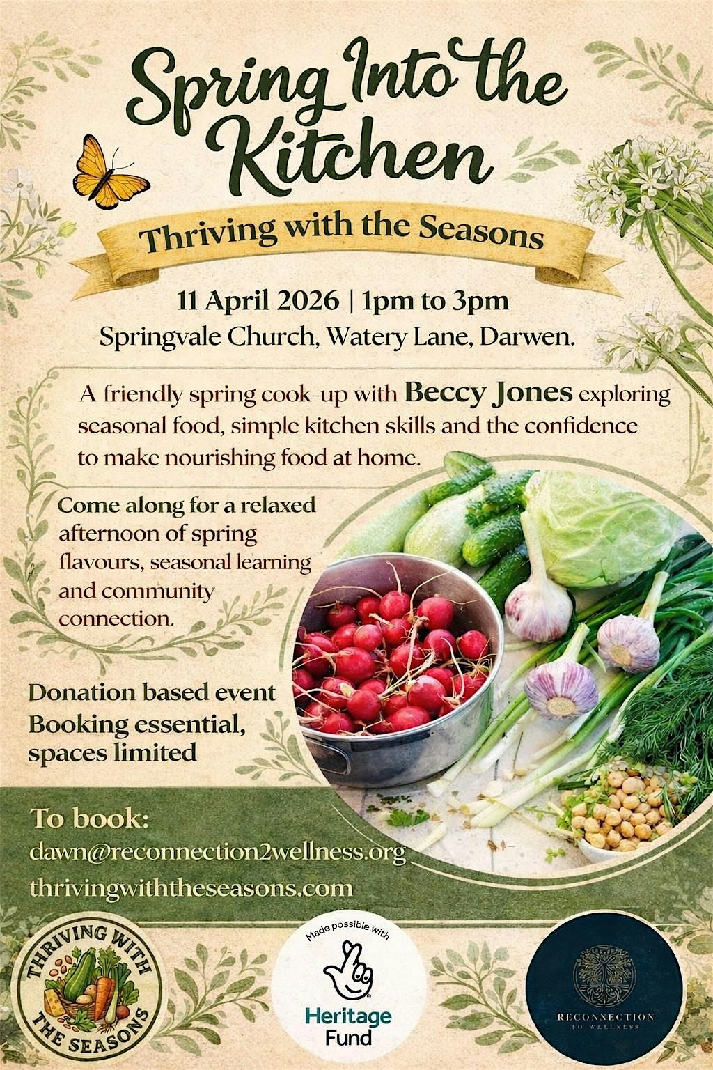 Join us for a relaxed spring afternoon with Beccy Jones from Beccy Jones Health Solutions exploring simple seasonal food, practical kitchen skills, and the confidence to make nourishing food at home.