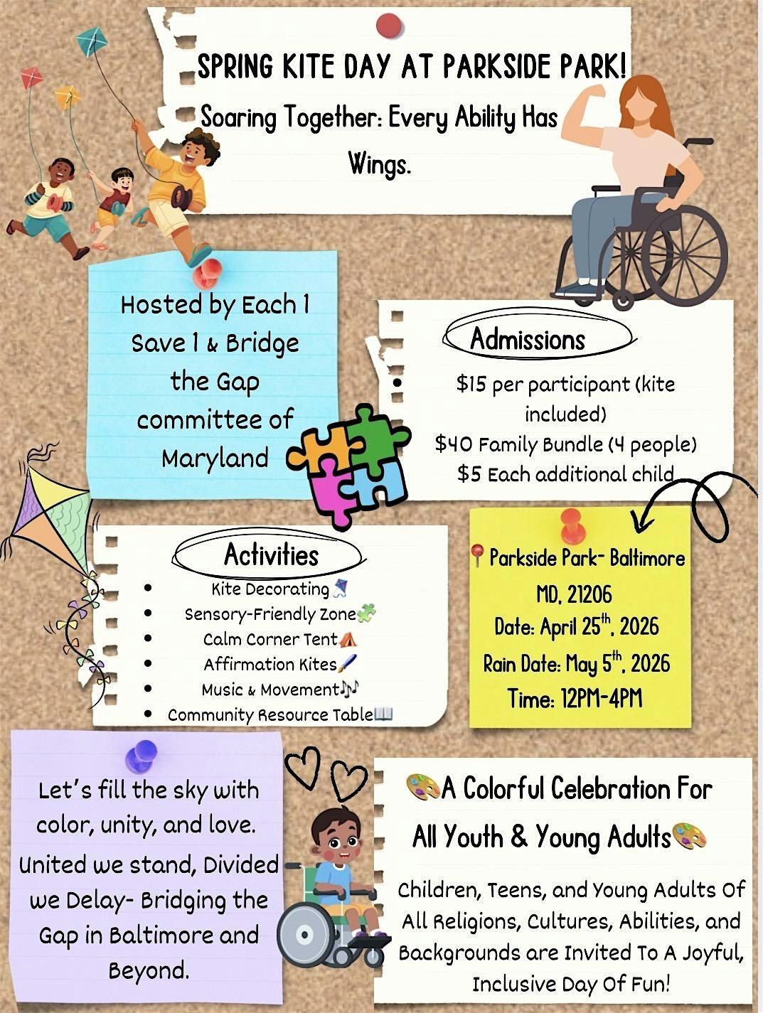 This event is dedicated to creating an inclusive and engaging experience for individuals with disabilities of all ages. Through enjoyable activities and shared moments, participants will have the opportunity to socialize, build connections, and celebrate community in a supportive and uplifting atmosphere.
