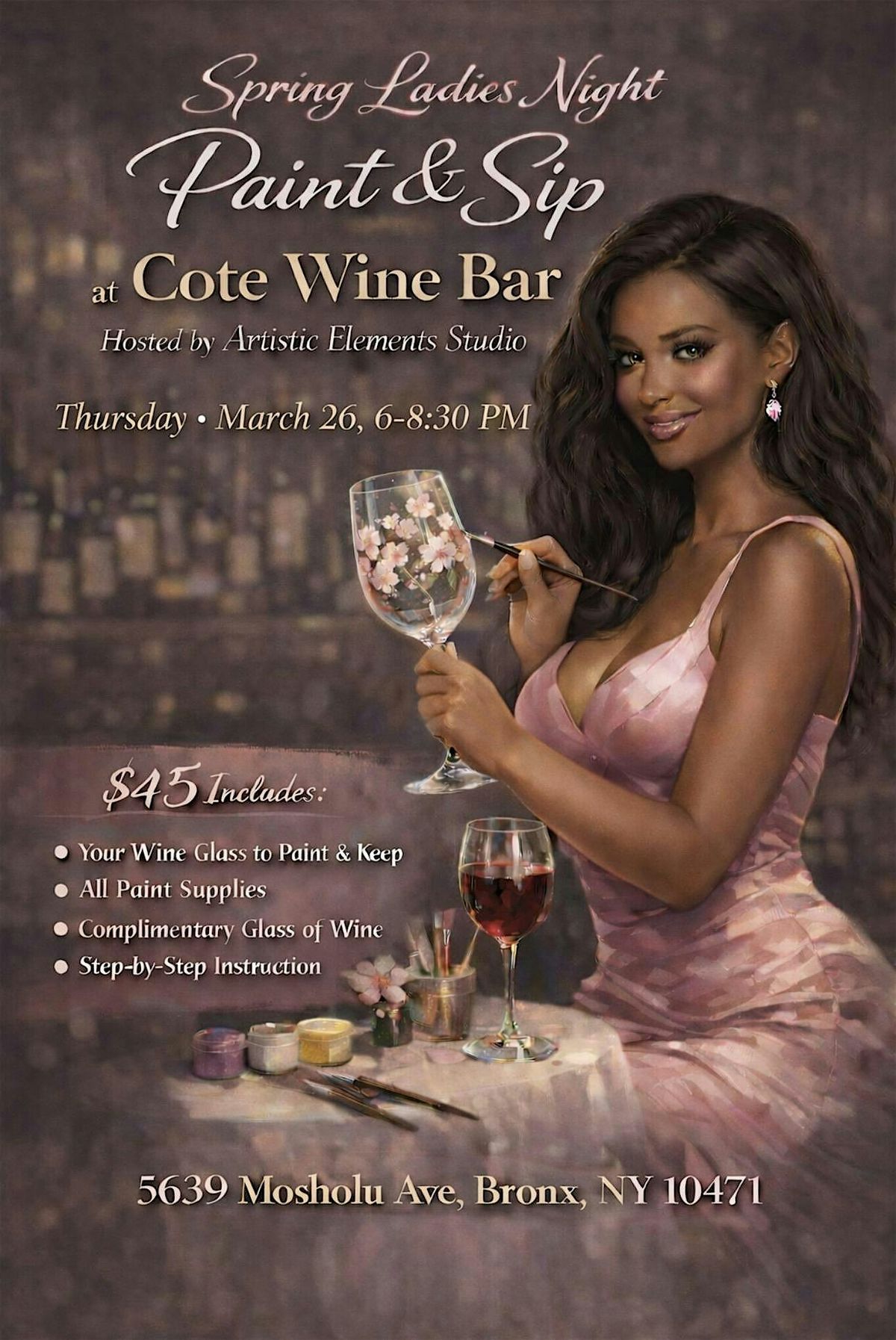 Celebrate Springtime at at Cote Wine Bar with a Spring Ladies Night Paint & Sip hosted by Artistic Elements Studio 🌸🍷