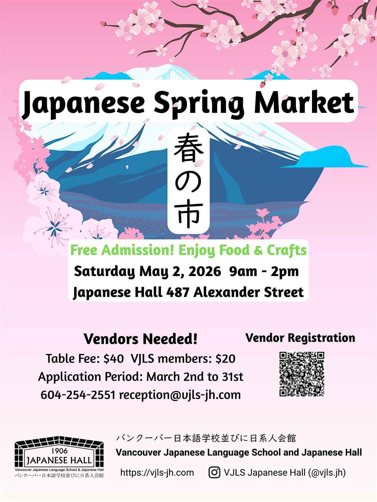 Vancouver Japanese Language School and Japanese Hall will host the return of its Spring Market on Saturday, May 2, 2026.