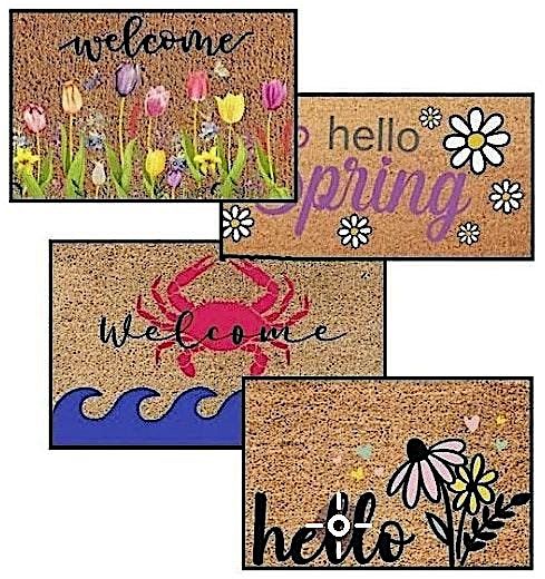 Create a unique seasonal welcome mat from a selection of spring and beach themed designs! Images shown are examples, not necessarily the stencils that will be available. Make one for yourself or give as a gift!