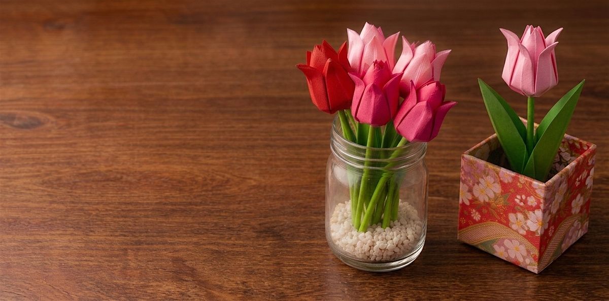 Let’s grow a paper garden that never wilts: an elegant origami tulip with a leafy stem, ready to bloom solo in a cube vase or multiply into a cheerful bouquet.