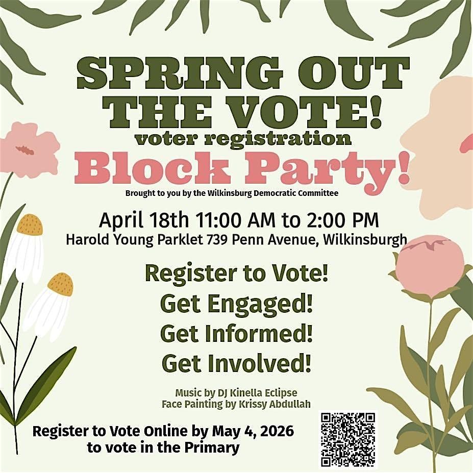 Come engaged, get informed, leave empowered! That's the agenda for the first Spring out the Vote! Block party, hosted by Wilkinsburg Democratic Committee.