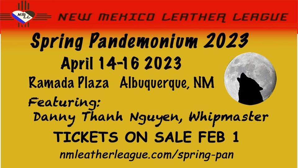 New Mexico Leather League's spring Leather Event, Spring Pandemonium is back at the Ramada Plaza the weekend of April 14-16.. There will be an exciting new selection of classes, a dungeon, and a FEATURED PRESENTER, Danny Thanh Nguyen, a budding queer/kink author as well as a master with the whip.https://nmleatherleague.com/spring-pan