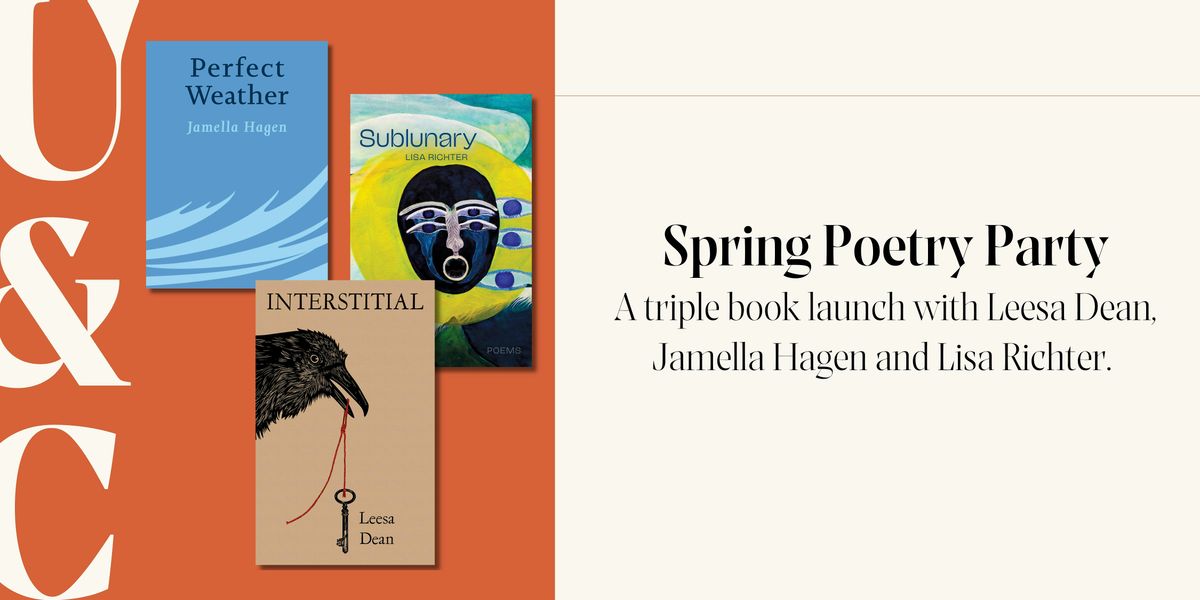 Join us at Upstart & Crow as we celebrate three new spring releases from acclaimed poets Jamella Hagen (Whitehorse, YT), Lisa Richter (Toronto, ON) and Leesa Dean (Krestova, BC). The evening will feature author readings and a discussion with host Abby Wener Herlin. This event is free but capacity is limited, so please reserve your spot here.