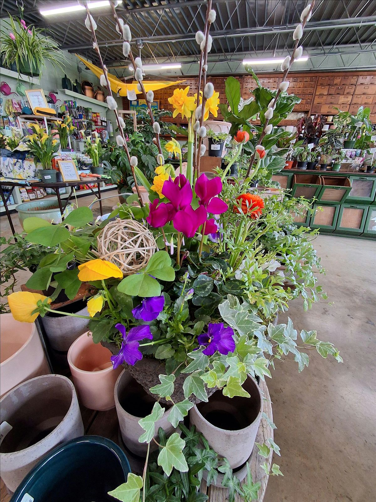 Learn the fundamentals of creating beautiful pots using spring annuals! You will receive a 10” fiber pot filled with soil, and access to all varieties of in stock annuals. Create your pot to suit your space. Everything you need is included and you’ll leave with a beautiful spring porch pot ready to slip into your decorative pot!