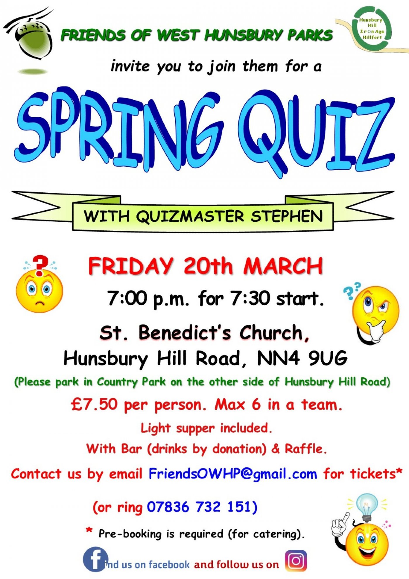 The Friends of West Hunsbury Parks invite all to join in a Spring Quiz evening with Quizmaster Stephen Bowers.
