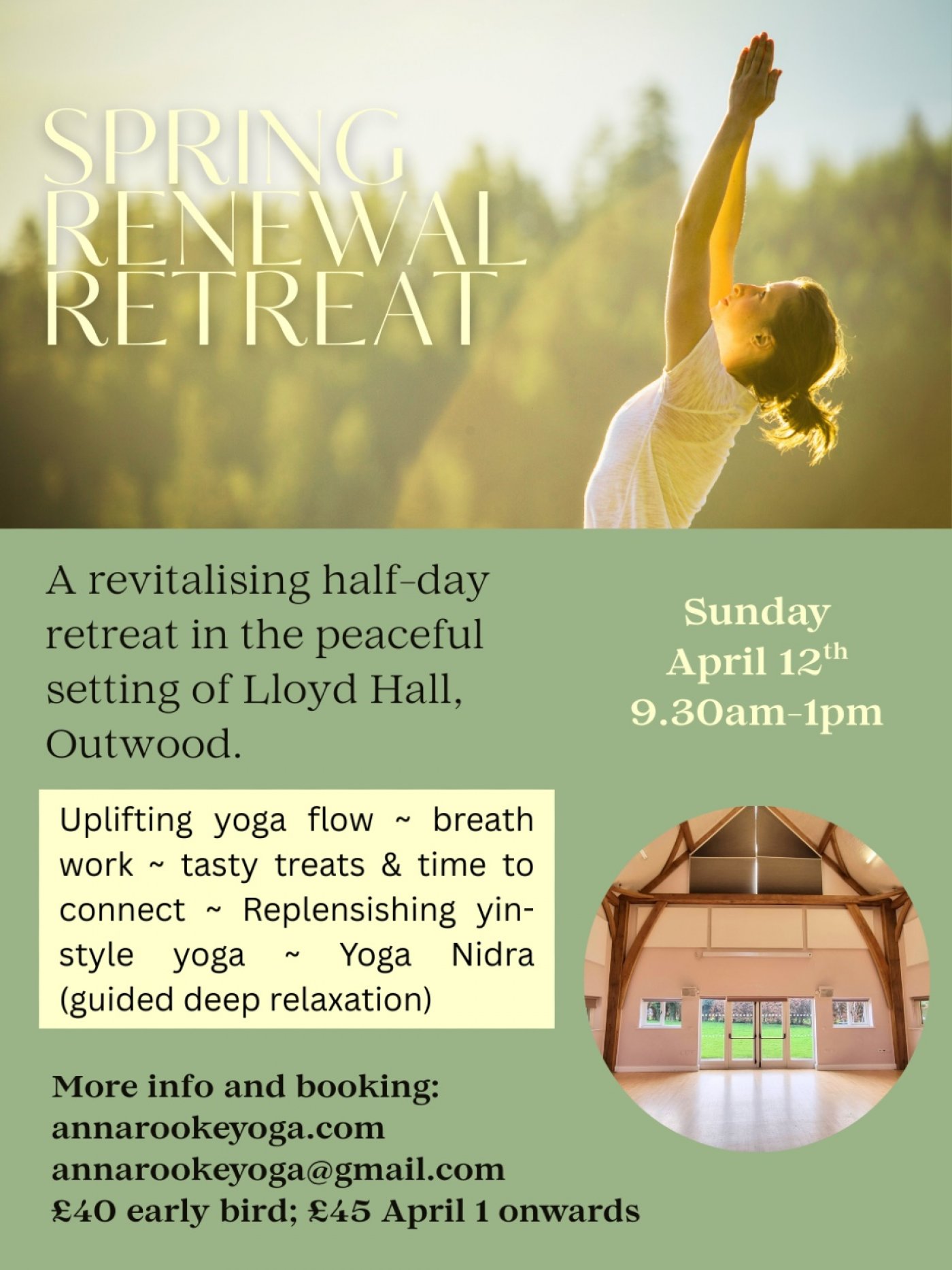 Lloyd Hall is in the peaceful village of Outwood and there are local pubs and countryside walks to enjoy if you would like to make a day of it. Early bird rate = £40 (until end of March); £45 thereafter.