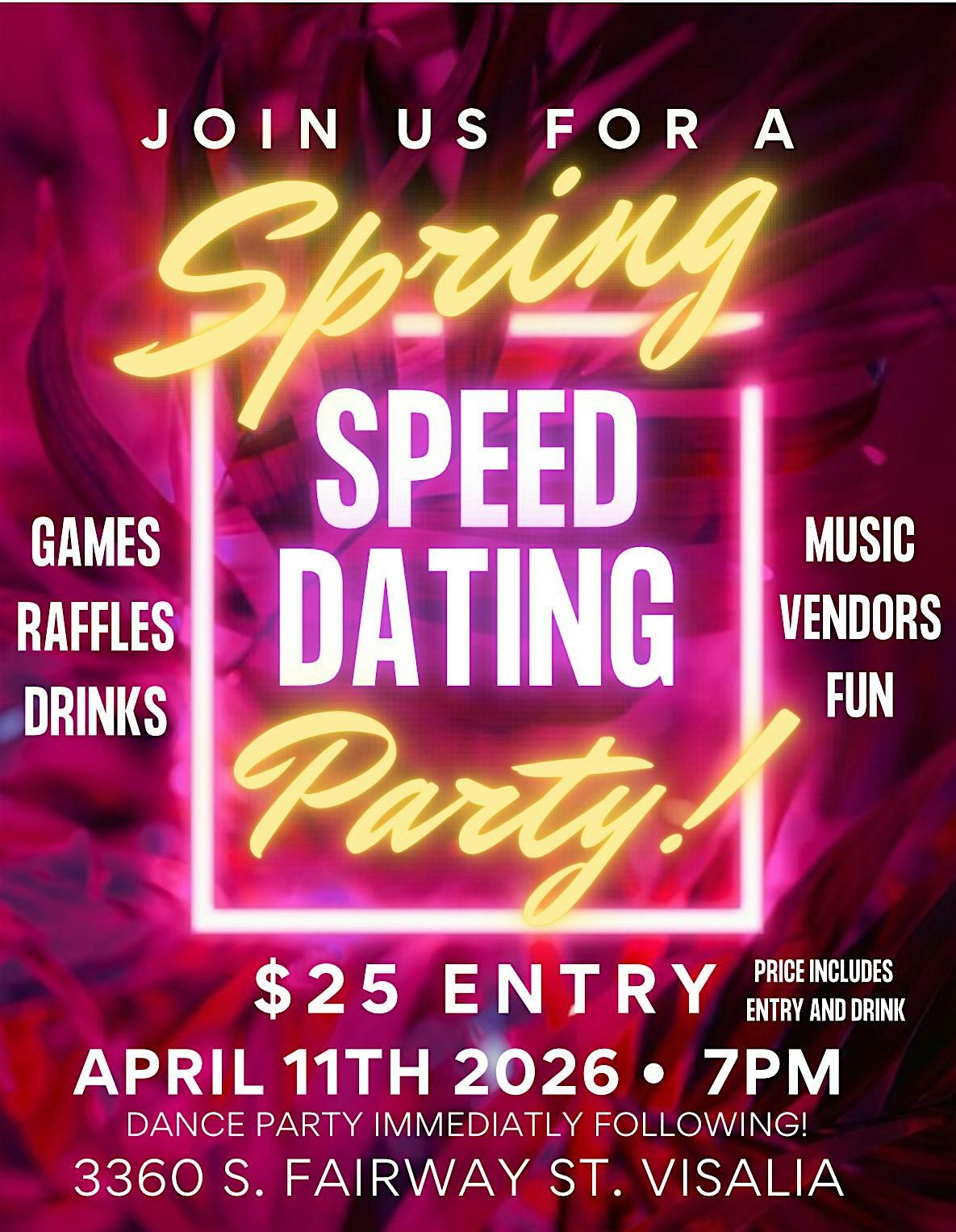 Don't miss out on this exciting event! Mark your calendars and get ready for a night of laughter, good company, and who knows, maybe even love! And your first drink is on us! Dont forget about the vendors and dance party immediately following!