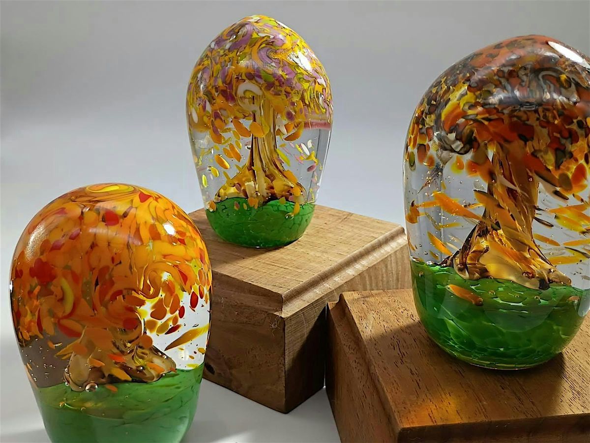 In this workshop our instructor/s will guide you through studio basics in safety and process and then give a demonstration on the hot glass furnace-worked piece you will be making. You will then have the opportunity to gather molten glass from a 2100-degree furnace. You will get to choose your colors and sculpt molten glass into a beautiful and unique creation of your own. Your creation will have to cool down slowly overnight and will be available to pick up a couple of days later. The studio can get hot, so please dress accordingly. T-shirts and blue jeans work well, along with closed toed shoes. No synthetic clothing!! NO leggings!! If you have a personal pair of safety glasses or prescription glasses, please bring them. Otherwise, we have some to lend out in the studio. You must be 10 years of age or older to participate.