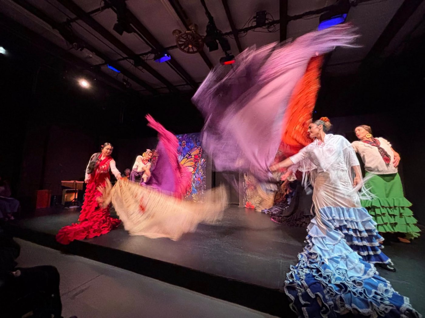 Each performance features passionate flamenco dancing, soulful cante jondo (deep song), breathtaking guitar solos, romantic duets, group choreography, and spontaneous moments of improvisation — making every Friday night a unique and unforgettable experience. Joining them are wonderful guest and company artists including Monze Díaz (Dancer), Gretchen Williams (Singer), and Mina Fajardo’s Teatro Paraguas Company Dancers.