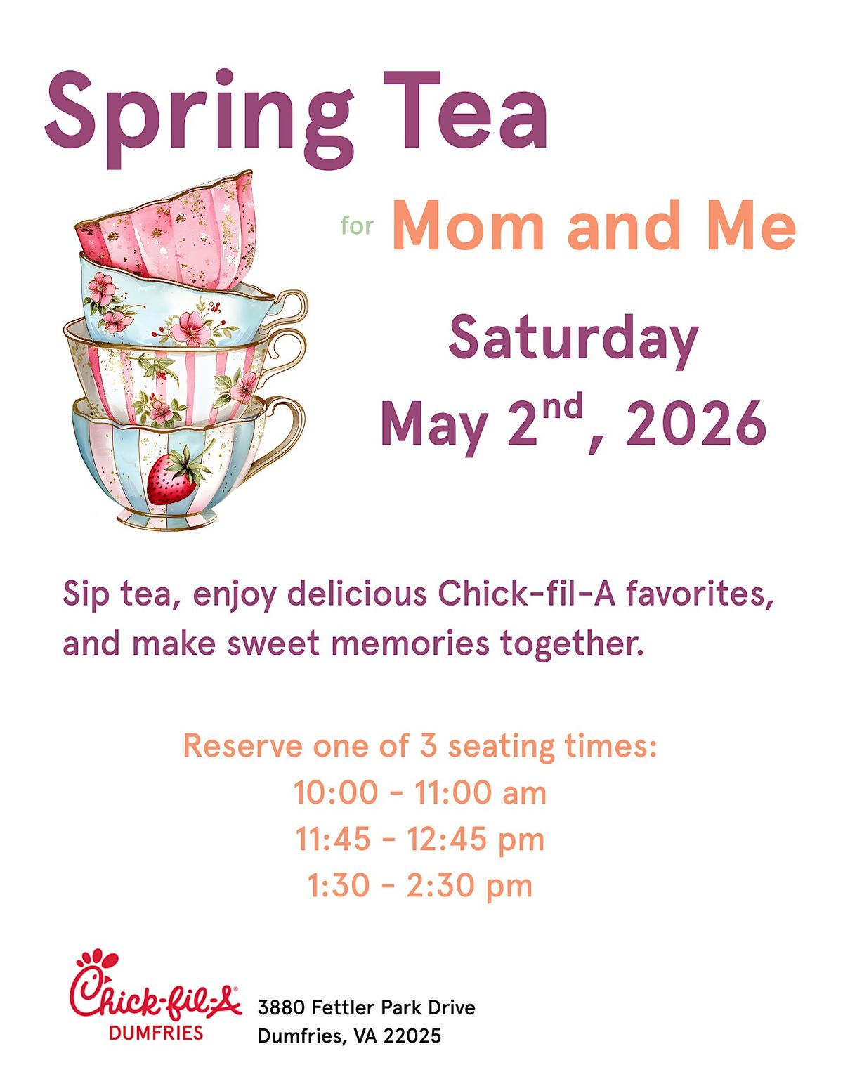 Spring Tea for Mom and Me at Chick-fil-A Dumfries