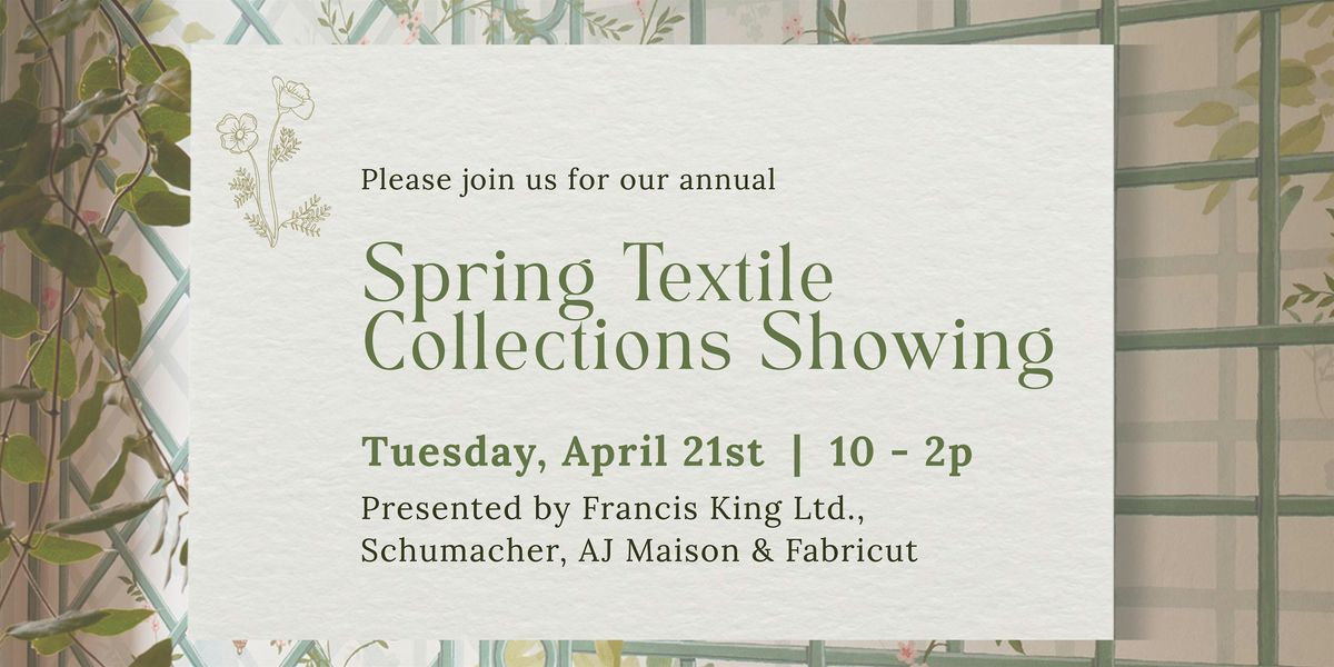 Join us at International Market Square for our annual open-house-style textile event hosted by Francis King, Schumacher, AJ Maison, and Fabricut. We're showcasing all that's new, right in one convenient place!