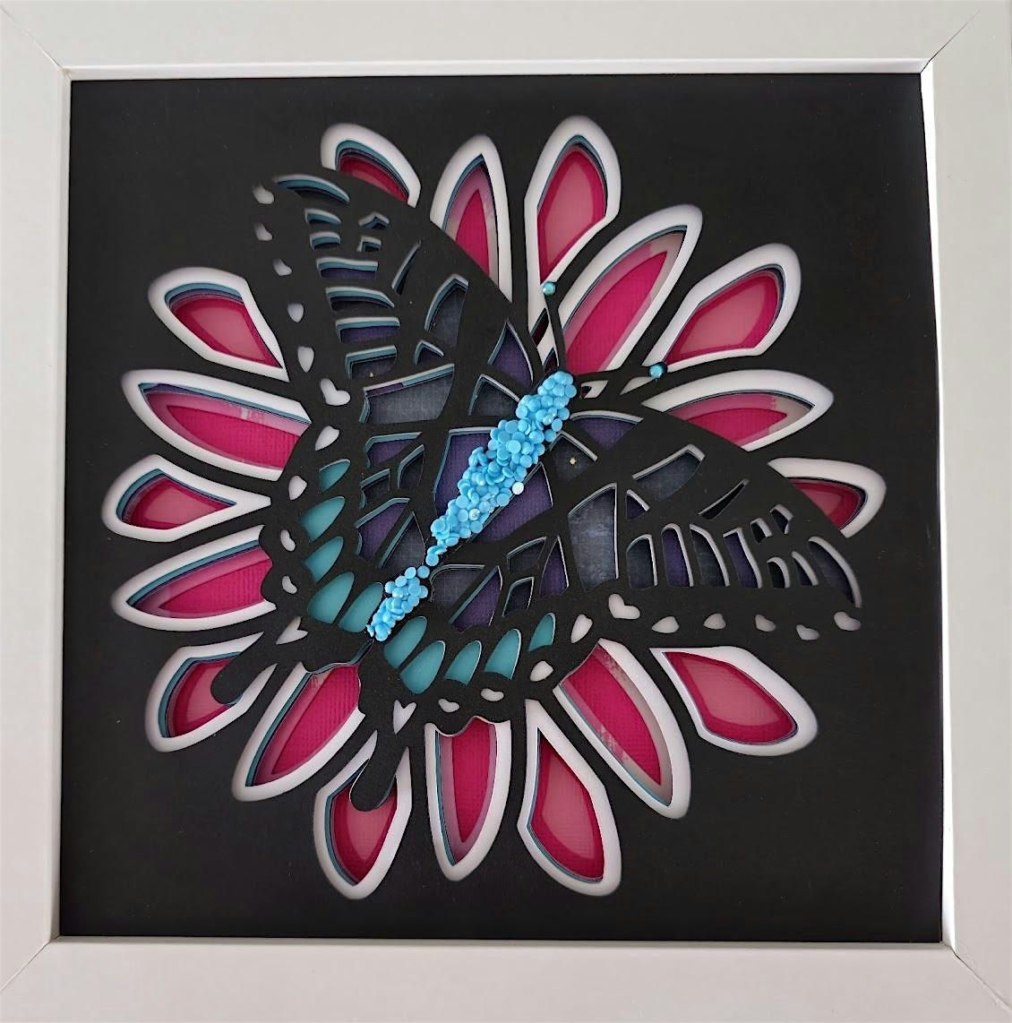 Celebrate the season by crafting this vibrant 3D paper art piece featuring a butterfly and daisy in full springtime color. This cheerful design is built from seven layered cuts, giving your artwork beautiful depth and dimension.