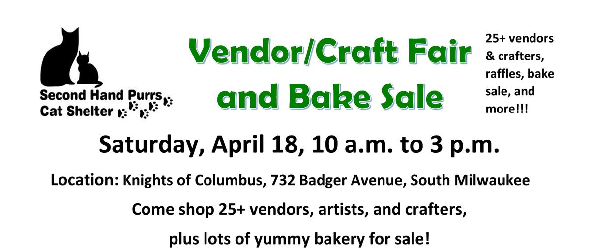 Second Hand Purrs spring vendor/craft fair and bake sale returns Saturday, April 18th!!!!