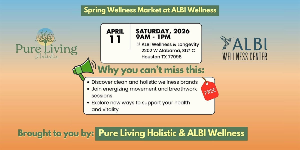 Pure Living Holistic, in collaboration with ALBI Wellness, brings you the Spring Wellness Market at ALBI Wellness.