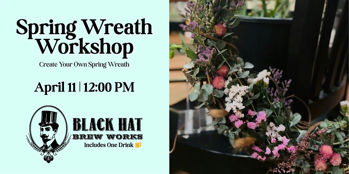 Join us at Black Hat Brew Works where you'll create a spring wreath with fresh greenery and flowers to take home. Perfect for all skill levels—bring your creativity and good vibes!