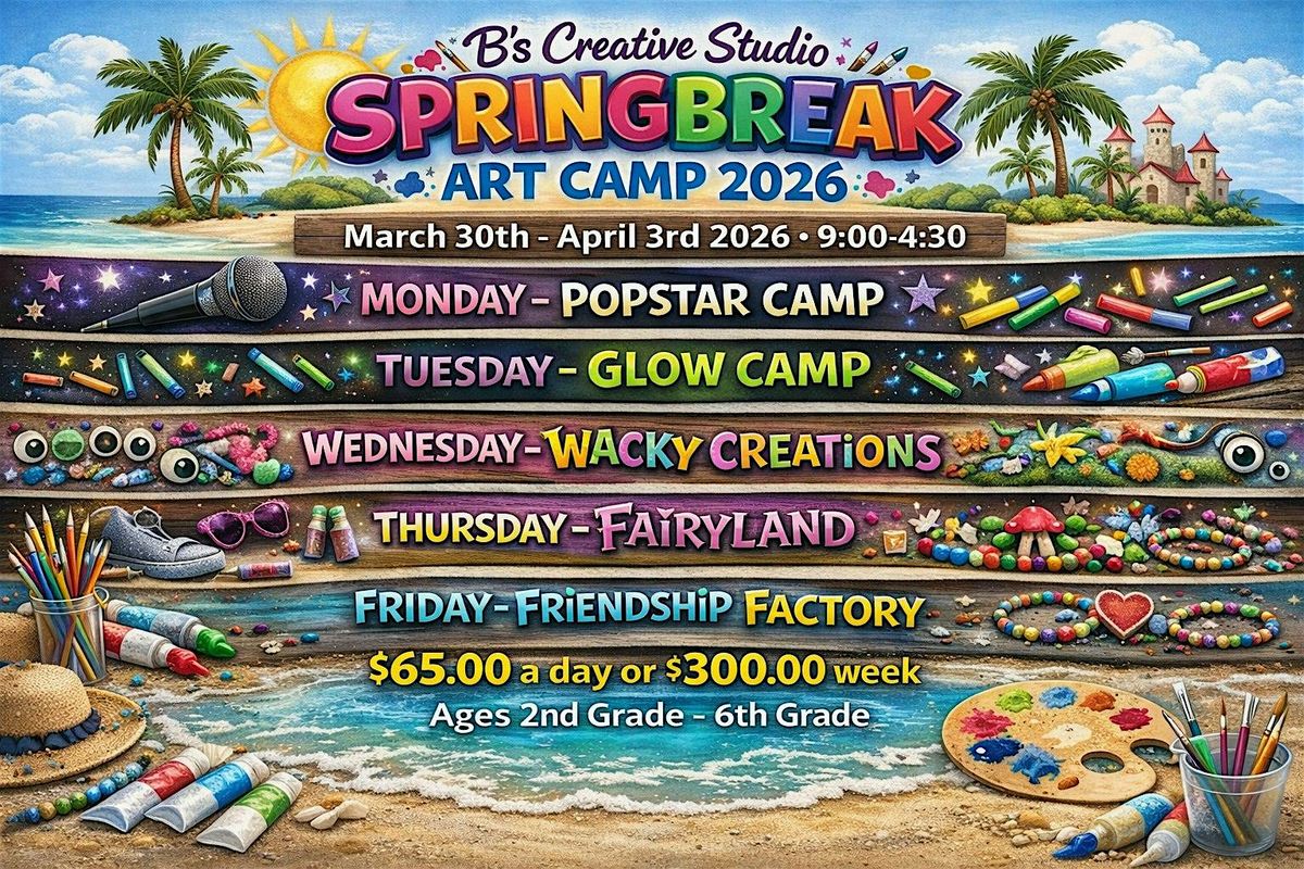 this Springbreak art club will meet daily 9-4:30. Students can sign up for the whole week or for one day.