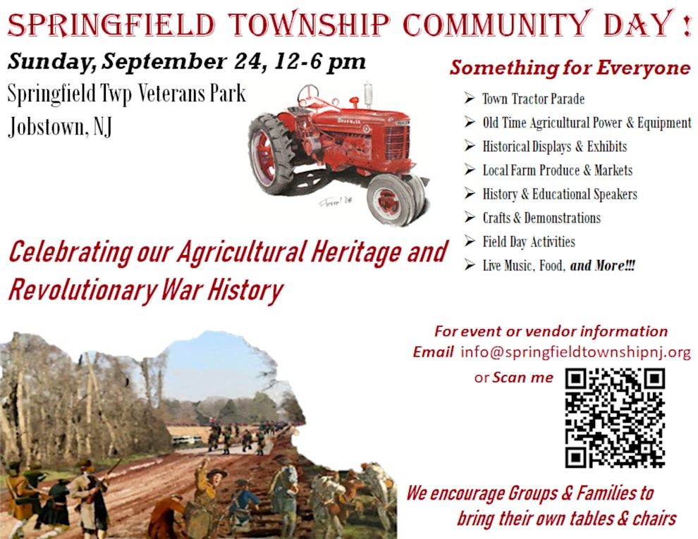 Come celebrate our Agricultural Heritage and Revolutionary War History! Opening Ceremony 1 PM. https://www.springfieldtownshipnj.org/About this Event