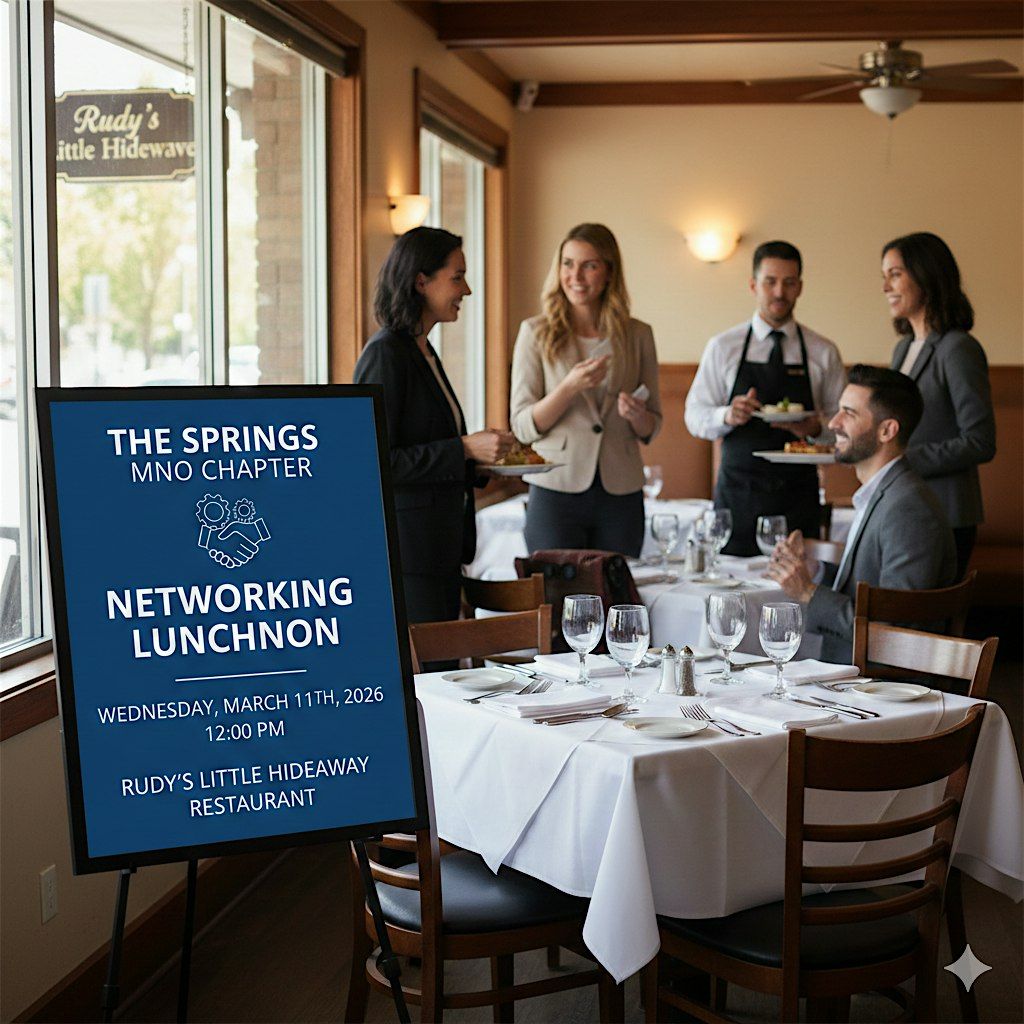Join us for the Springs MNO Lunch Business Mixer, an awesome chance to connect with fellow professionals face-to-face! Enjoy some great food, casual vibes, and the opportunity to build meaningful business relationships. Whether you're looking to network, share ideas, or just meet new people in a relaxed setting, this in-person mixer is the place to be. Don't miss out on making valuable connections over lunch!