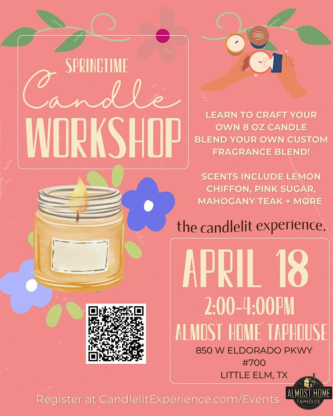 Pour, blend, and create at our Candle Making Workshop hosted at Almost Home Taphouse on Saturday, April 18 from 2-4pm. Guests will design a personalized candle in a cozy taproom setting, making it the perfect mix of creativity and connection. Sip, socialize, and leave with a candle you made yourself.