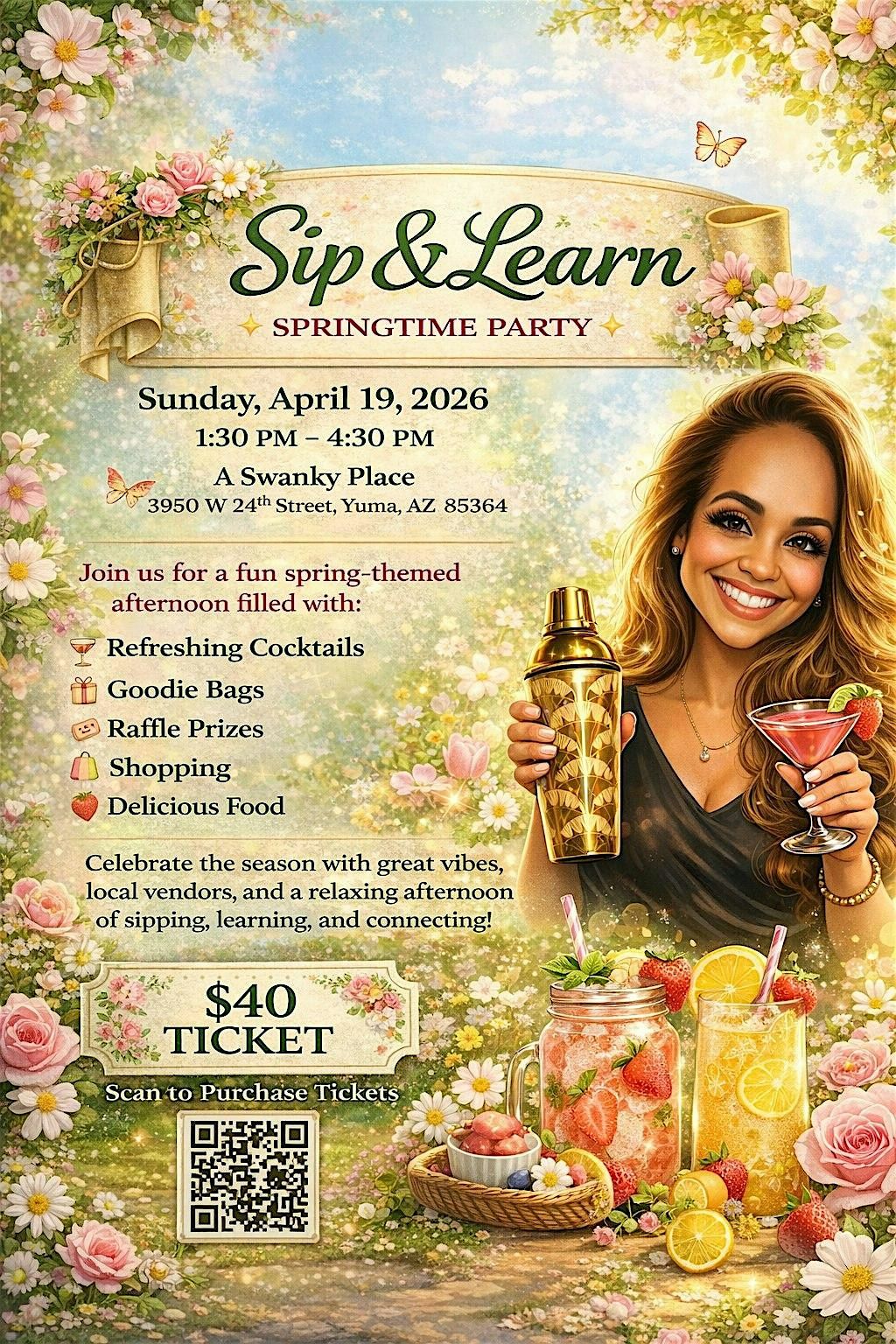 Your ticket comes with all materials needed to make 3 Springtime inspired drinks, a goodie bag and 2 raffle tickets