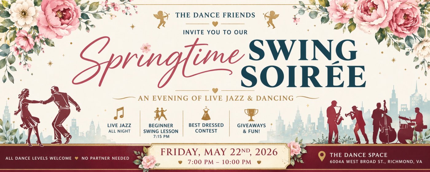 Step into a night of live jazz, vintage style, and springtime charm! The Dance Friends would like to invite you to celebrate with us by swingin’ into the new season during our Springtime Swing Soiree!