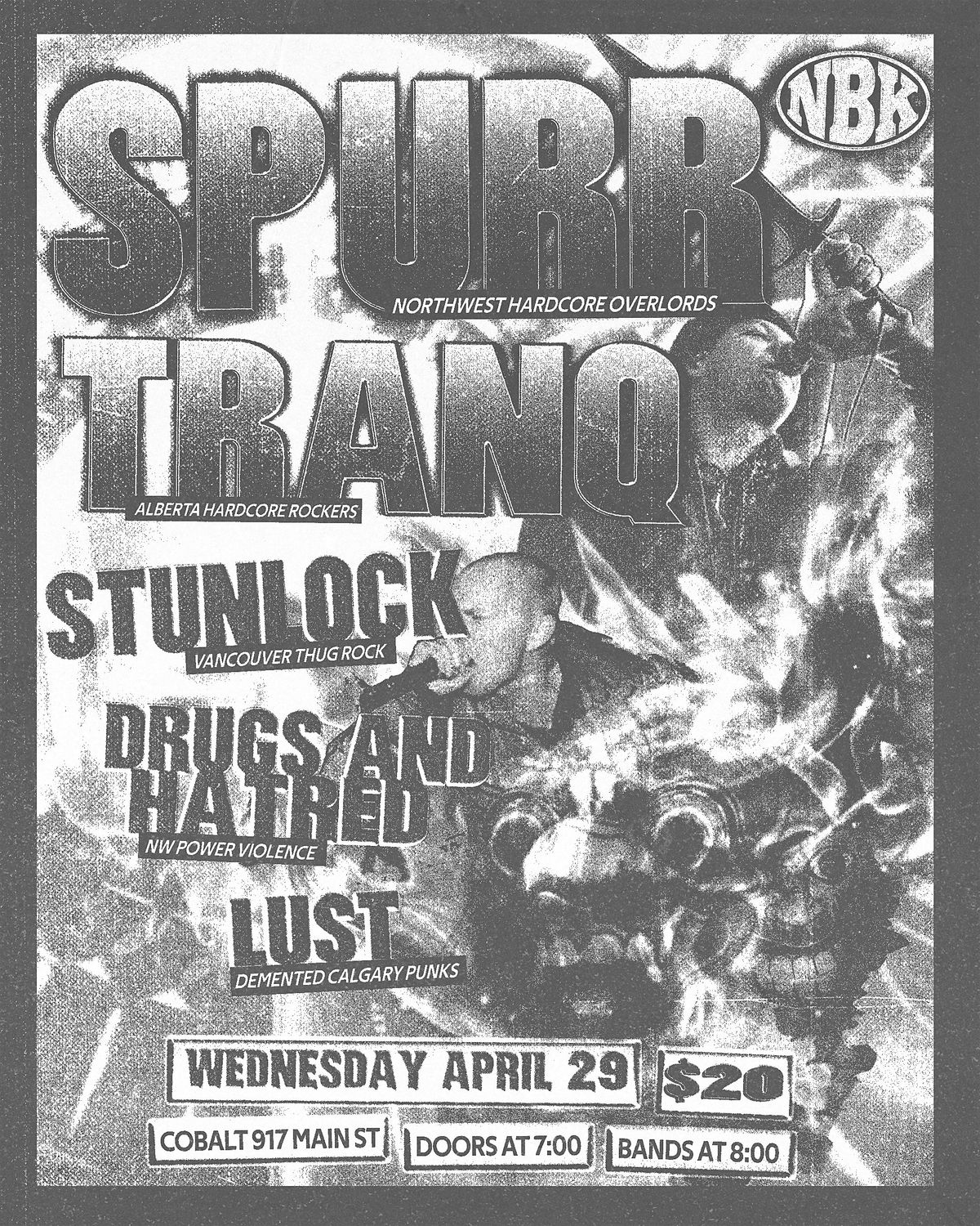 SPURR, TRANQ AND LUST RIP UP VANCOUVER HC HQ W/ LOCAL SUPPORT FROM THE MANIACS IN DRUGS & HATRED AND THUG ROCKERZ STUNLOCKAbout this Event