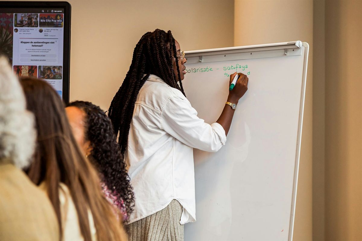 We gaan in gesprek over wat Sranantongo betekent voor onze identiteit. Wat doet het met je als je de taal niet (of niet volledig) spreekt? We onderzoeken onze relatie tot taal en leren gezamenlijk onze eerste woordjes Sranantongo.