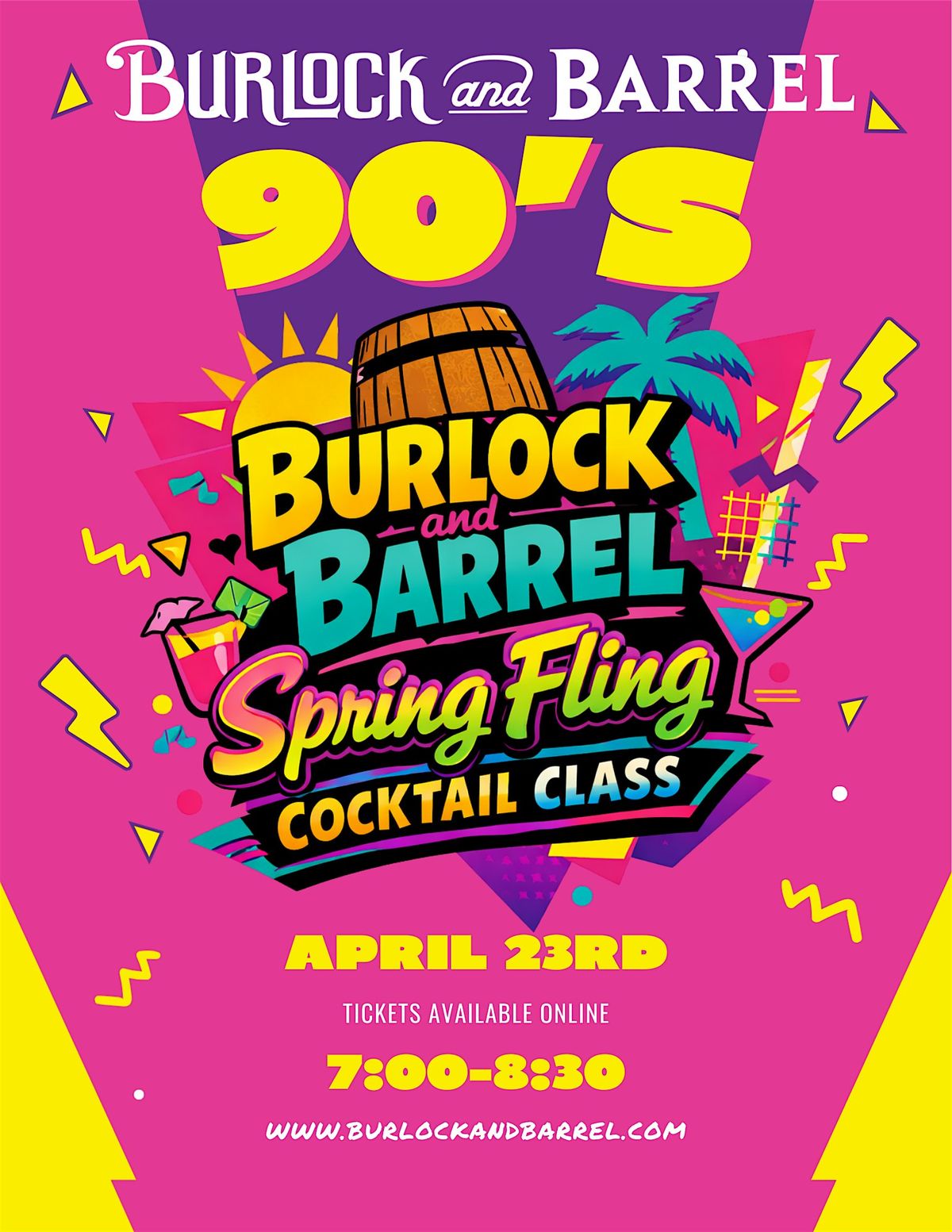 Join us at Burlock and Barrel on April 23rd from 7:30–8:00 PM for a nostalgic, high-energy cocktail class that puts a whiskey-forward spin on your favorite throwback drinks.