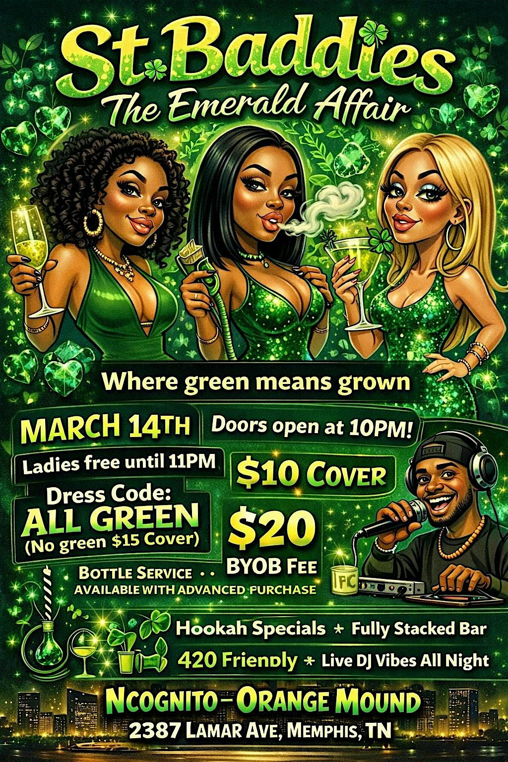 All green. Big energy. Everybody welcome — pull up to St. Baddies for a grown & turnt St. Patrick’s vibe. March 14 at Incognito.About this Event