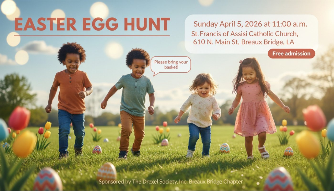 Join in on the Easter celebration and family-fun at St. Francis of Assisi Church in Breaux Bridge on Easter Sunday. The annual Easter egg hunt will offer food, music, and Easter egg hunt for the kids, door prizes and more. Don't forget to bring your own Easter baskets to collect all those goodies!