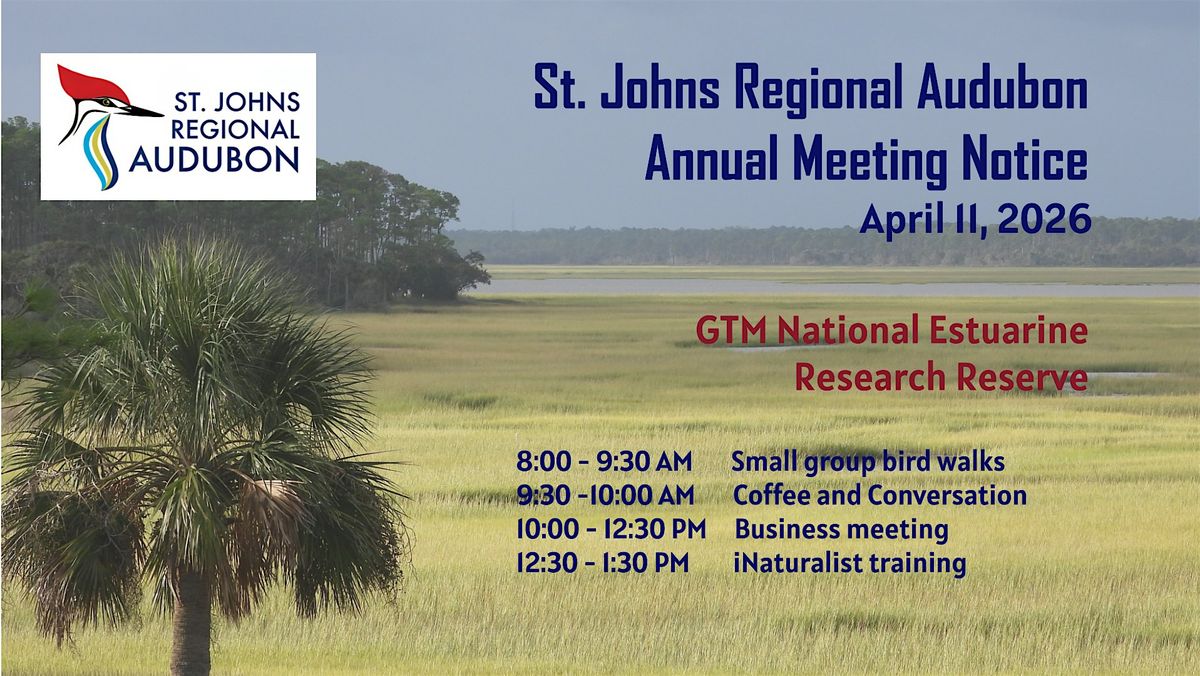 Join us for our April 11 Annual Meeting to be held at the GTM NERR Education Center. We have a full morning of activities planned and you'll have great opportunities to meet and chat with other members!