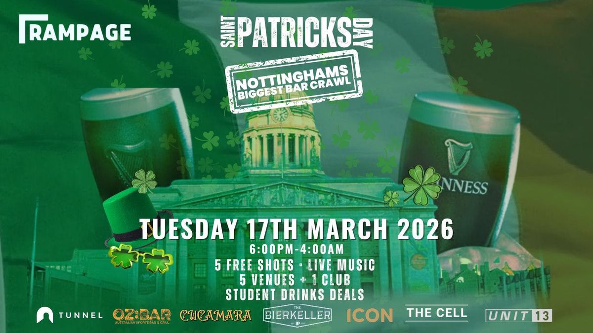 St Paddy's Day Bar Crawl 2026 - Nottingham | 6 FREE SHOTS | 6 VENUES | 2 CLUBS [150 TICKETS FOR UNIT 13 ADDED!]