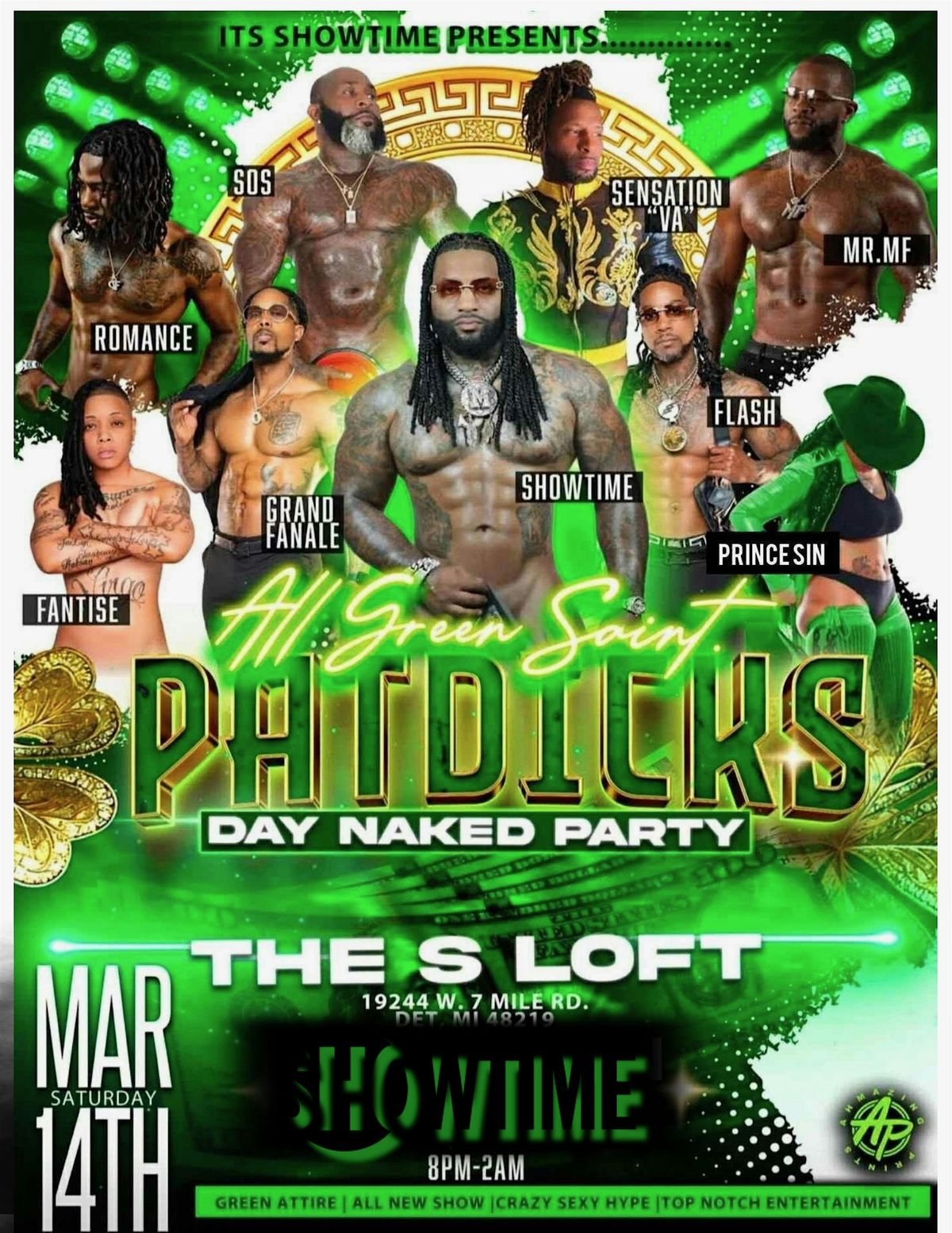 ALL GREEN SAINT PATDICKS DAY NAKED PARTY YOU DON'T WANNA MISS. COME SEE YOUR FAVORITE IN STATE MALE DANCERS AS WELL AS OUT OF TOWN DANCERS.