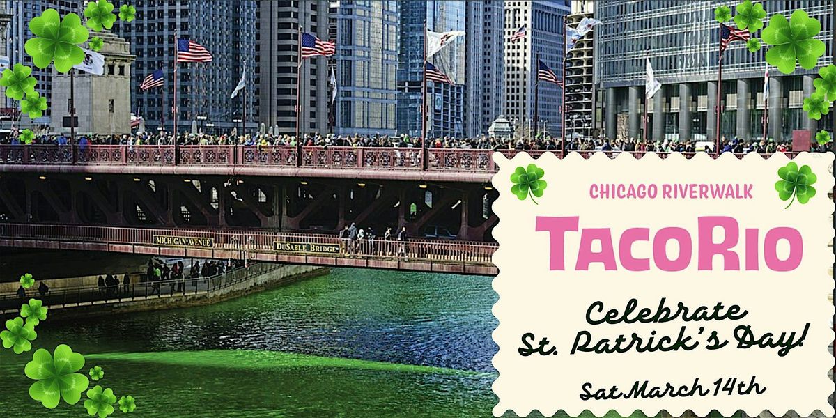 Celebrate the dyeing of the Chicago River with Tacorio on Saturday, March 14, 2026, at our Chicago Riverwalk location. This rain-or-shine, ticketed St. Patrick’s Day experience will have music, dancing, tacos, festive drinks, and a lively Riverwalk atmosphere—plus access to our heated patio for a comfortable celebration, no matter the weather.