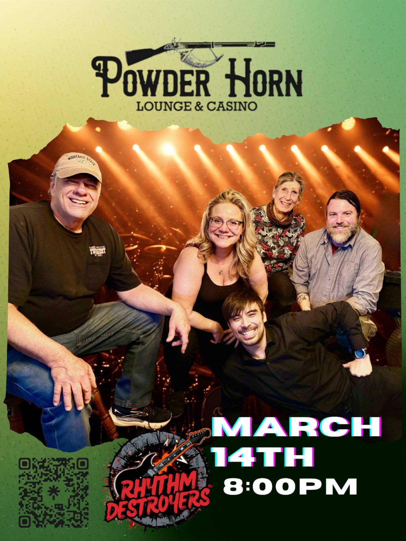 The Rhythm Destroyers are your unofficial St. Patrick’s Day spirit guides. Expect big guitars, questionable toasts, and enough green lighting to make you see double. Powder Horn Lounge—let’s get rowdy.