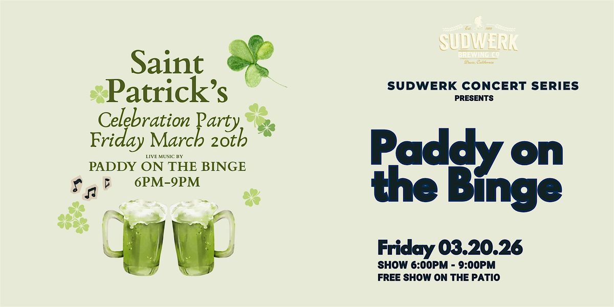 Food Specials, Green beer, Guiness on tap and Paddy on the Binge playing live music on the patio