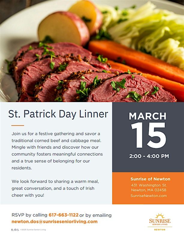 Join us for a festive Irish gathering and savor a traditional corned beef and cabbage meal.