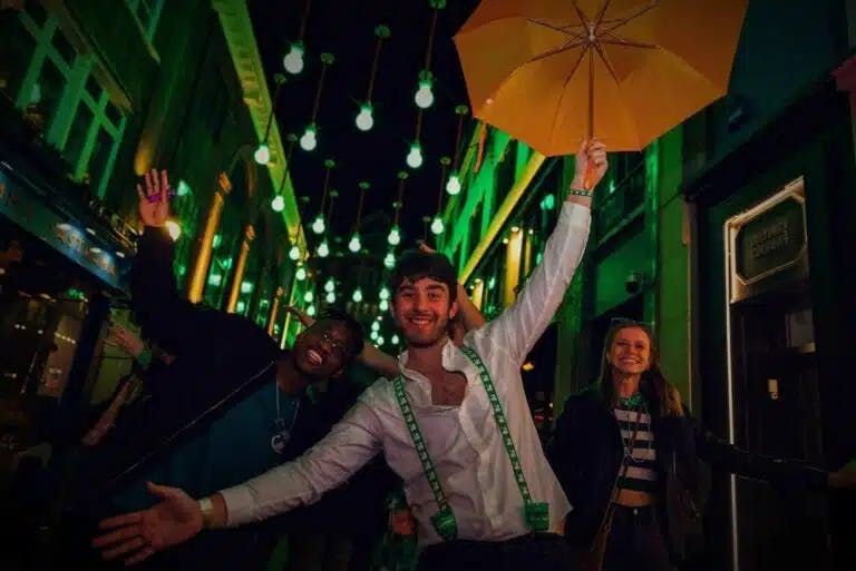Join our Central London St. Patrick's Crawl and immerse yourself in a wave of glitter-green partygoers bringing Irish charm to the vibrant streets of the West End and Soho. We’ll visit 4/5 top venues for a night full of fun and festivity.