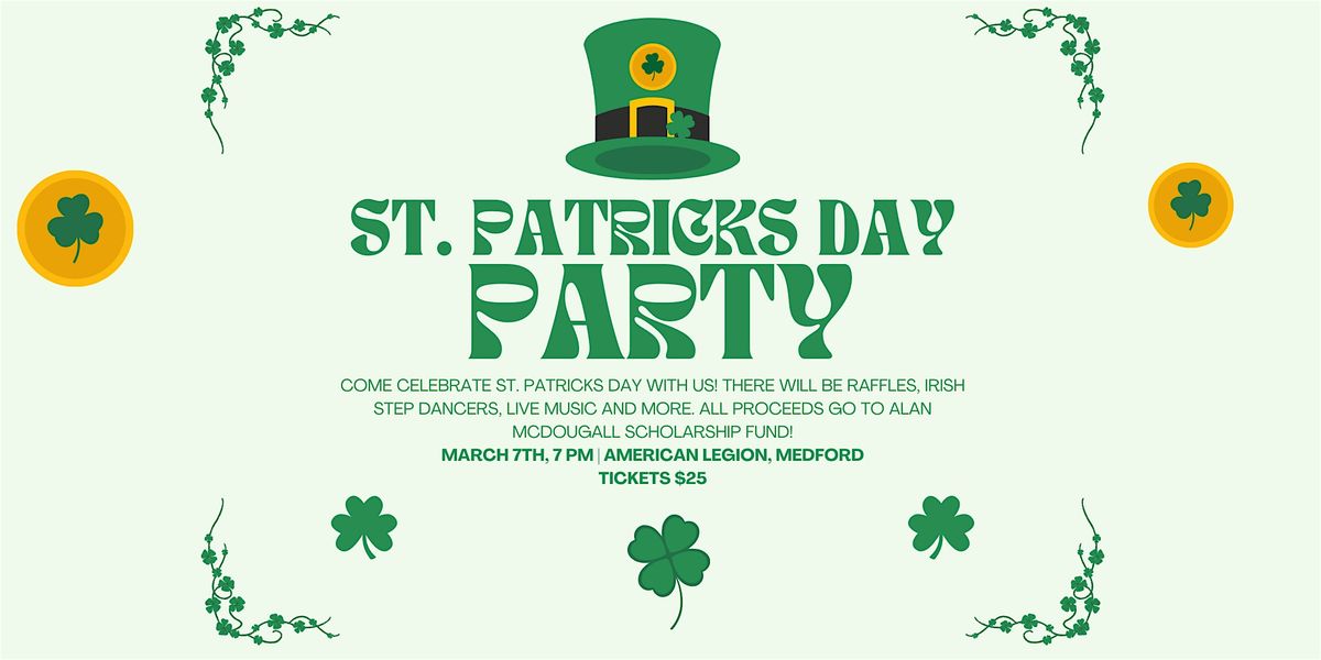 Celebrate St. Patrick's Day with us at our exciting event hosted by the Alan McDougall Scholarship Fund! Join us for a night filled with Irish music, dancing, and fun. Wear your best green outfit and get ready for a festive atmosphere. Don't miss this opportunity to support a great cause while having a blast! See you there!