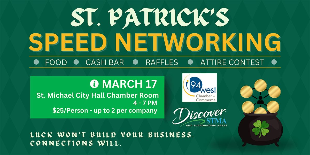 Discover STMA and the I-94 West Chamber of Commerce are teaming up for our 3rd Annual St. Patrick’s Speed Networking Event — and it’s going to be bigger, better, and luckier than ever!