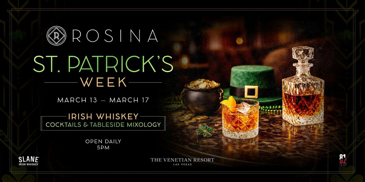 Join us at Rosina for St. Patrick’s Week from March 13 through March 17, where Irish whiskey takes center stage in expertly crafted cocktails and elegant table side mixology!