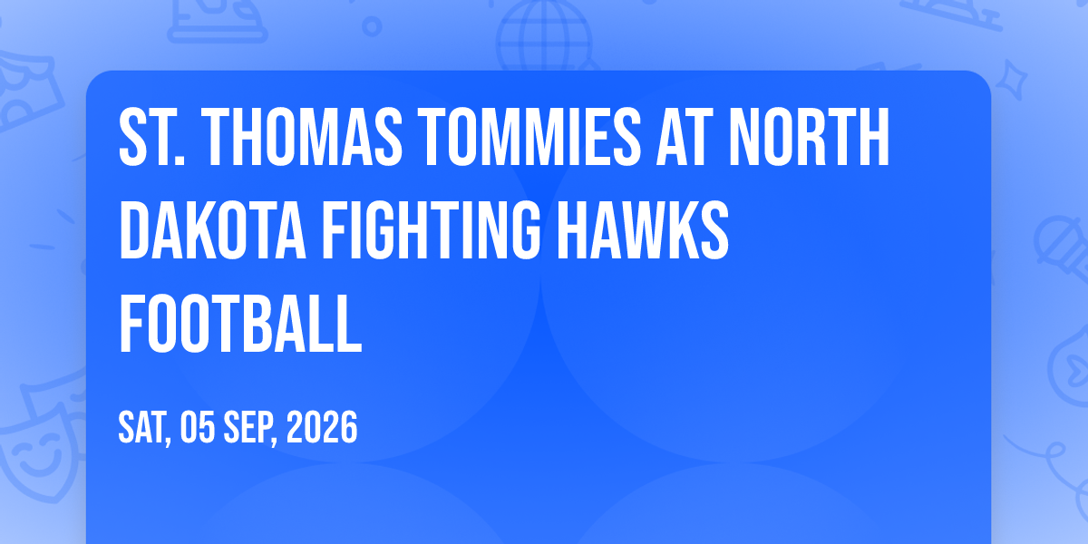 π Location: 47.9107, -97.0911π Step into a world of wonder at St. Thomas Tommies at North Dakota Fighting Hawks Football, where extraordinary moments await! ποΈ Located at Alerus Center in dynamic Grand Forks, ND, this event will become the talk of the town. π Join us on September 5th, 2026 at 08:30 AM for a celebration that defies the ordinary. β¨ This curated experience brings together the best of entertainment, culture, and community spirit. Every detail has been thoughtfully planned to ensure an unforgettable experience for all our guests. π― Take advantage of this opportunity to be part of something special. π Early registration is recommended as space is limited!