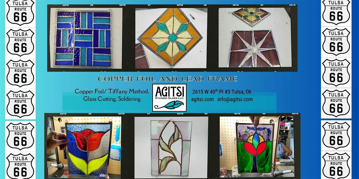 Join us at Agitsi Stained Glass, llc / RT66 Weddings, llc for a fun-filled in-person event! Get ready to unleash your creativity and make a stunning picture out of stained glass. Whether you're a beginner or an experienced artist, this workshop is perfect for everyone. Our skilled instructors will guide you through the process, teaching you the techniques and tricks to create your own unique masterpiece. Don't miss out on this opportunity to learn a new skill and have a blast with fellow art enthusiasts. Student glass is provided but it is of smaller sheets and assorted colors. This class you will choose one 12x12 sheet priced $19.99 and under from our store front as a complimentary sheet. If you want glass that is not in student area you are welome to purchase additional glass at 20% off