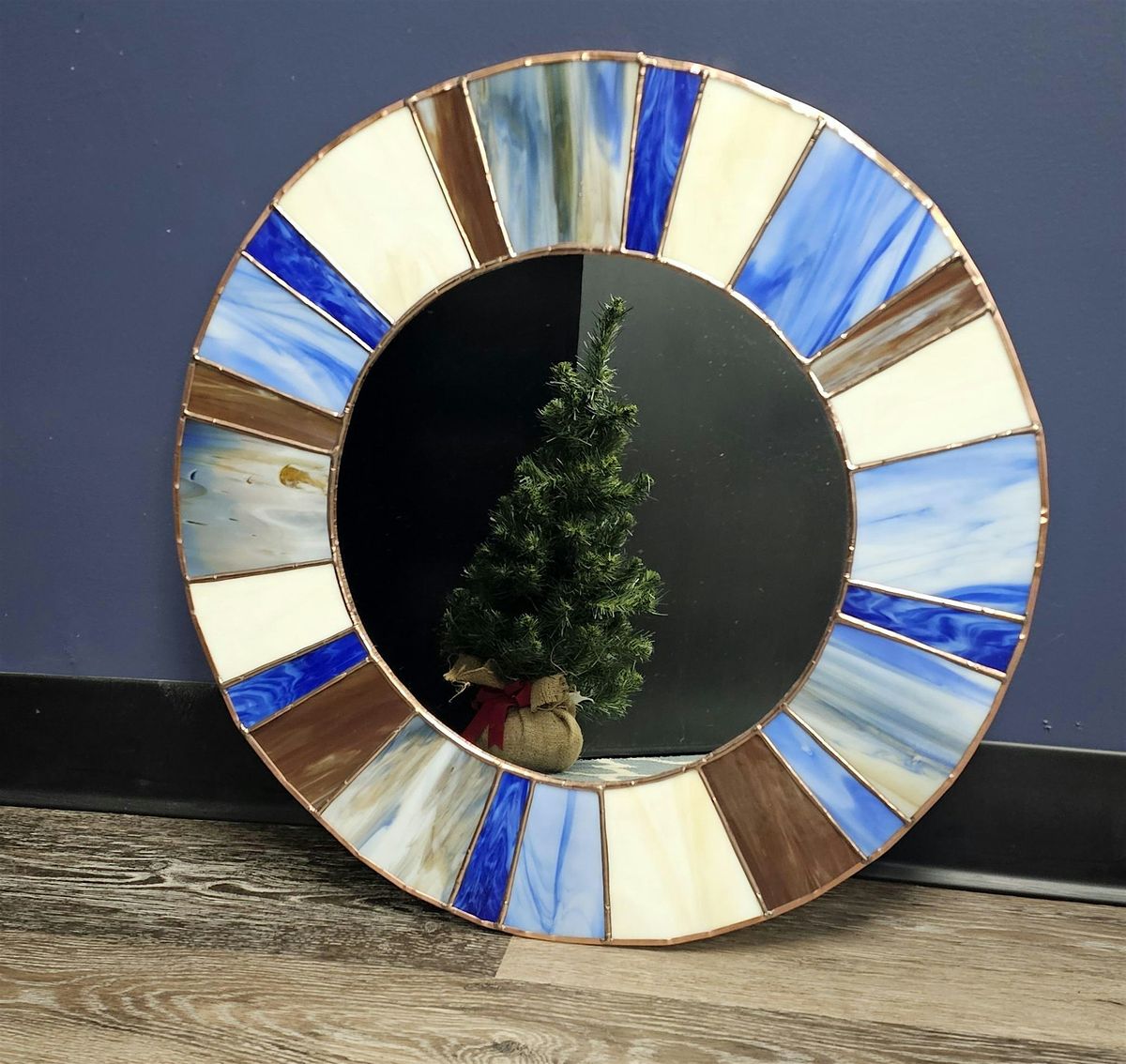 Select from pre-cut glass sets to make your own stained glass mirror! You can also upgrade the project to be a clock for an additional $25. Clock faces are availble in white or cream toned glass, vinyl cut numbers will be added at the end of the project. We'll foil and solder the round project together.