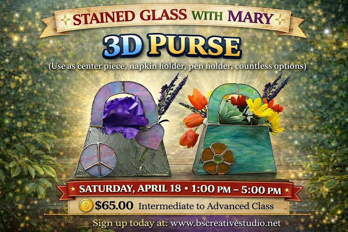 This 3D stained glass purse is great holder for pens, utensils, fake flowers, cute center piece.