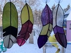 Participants will learn or practice the basic techniques of the copper foil method from start to finish - cutting glass, grinding, foiling, soldering, and patinating. The class will make a simple suncatcher from a feather motif but will end up with a unique piece by choosing from a variety of colors and types of glass, and making simple variations to their pattern. Tools and materials are provided.