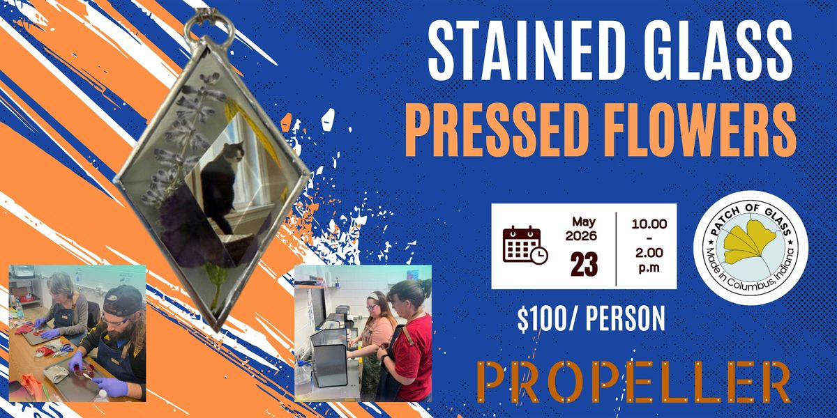 Dive into stained glass at Propeller! Join Grace from Patch of Glass Studio to learn the basics of cutting, grinding, and soldering while making your own pressed flower piece. All materials are provided, no experience needed, and this beginner-friendly workshop is a fun way to explore your creativity. Spaces are limited—grab a friend and join us for a colorful, hands-on experience!